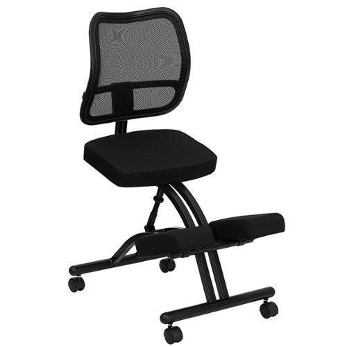 This ergonomic chair resembles the look of a conventional task chair, but with the inclusion of kneeling pads. You’ll be able to regain your body’s natural posture with this ergonomic kneeling chair with included back. Kneeling chairs sit you in a position to allow your diaphragm to move efficiently and promote better breathing and blood circulation. The frame is height adjustable to get into your preferred seat height. Use as your permanent office chair or in conjunction with a conventional task or executive office chair.