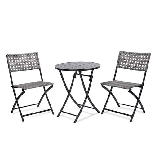 Transform your outdoor space into a haven of relaxation with our 3-piece wicker conversation bistro set. Crafted with precision and attention to detail, this set brings together style and functionality to elevate your outdoor experience. The grey wicker adds a touch of modern elegance to your surroundings, effortlessly complementing your patio, deck, or garden. The durable steel frame ensures that this bistro set can withstand the rigors of outdoor use, promising years of enjoyment. The folding chairs provide a practical solution for storage, making it easy to tuck them away when not in use or to rearrange your outdoor setup with ease. With minimal assembly required, you can spend more time savoring moments in the open air and less time fumbling with complicated instructions. Our chairs are not just stylish and space-saving but also incredibly sturdy, with a robust weight capacity of 250 lbs. per chair. So, whether you’re hosting a cozy gathering or simply enjoying a quiet moment outdoors, our 3-piece wicker conversation bistro set with steel frame is designed to offer comfort and convenience, enhancing your outdoor lifestyle.
