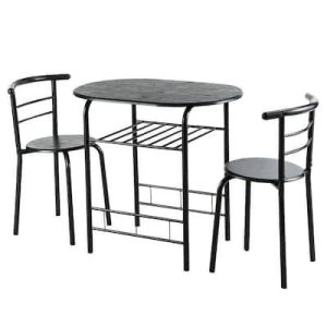Compact Design Saves Space: This bistro table set includes one table and 2 chairs which does not take much space due to its compact size. The back of the chair is curved and fits perfectly to the edge of the table, making this set a compact unit when not in use.