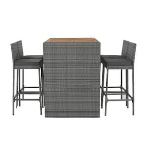 Charmie Gray 5-Piece Wicker Rectangle Bar Height Outdoor Dining Set with Removable Gray Cushions