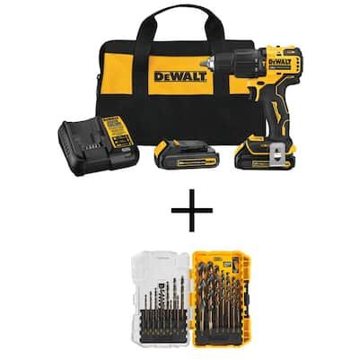 DEWALT ATOMIC 20-Volt MAX Cordless Brushless Compact 1/2 in. Hammer Drill Kit w/ Black and Gold Drill Bit Set (21-Piece)
