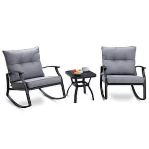 Fade Resistant Black 3 Piece Metal Outdoor Bistro Set with Gray Cushions