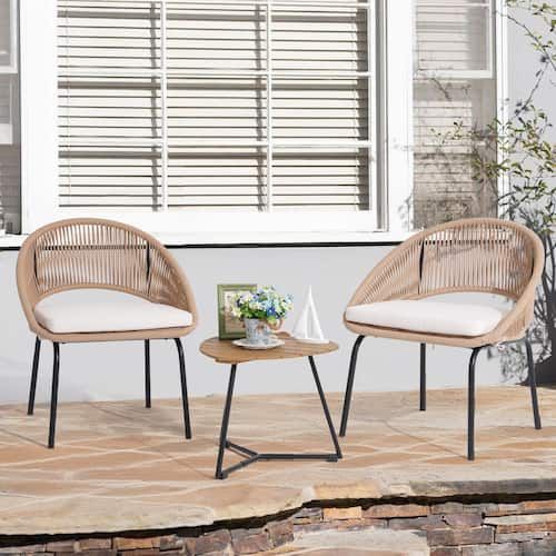 Freestyle OC Orange-Casual 3-Piece Metal Beige Woven Rope Outdoor Bistro Set with Beige Cushions