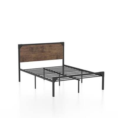 Build an industrial bedroom motif around the clean lines and simple, inviting flair of this platform bed. Offered in a choice of sizes, the bed boasts a wood finish headboard in a dark brown finish metal frame to create a mixed material design that offers simplicity and style to any bedroom. The metal bed includes bracket and bolt head accents that reinforce its rugged character while adding a touch of detail.