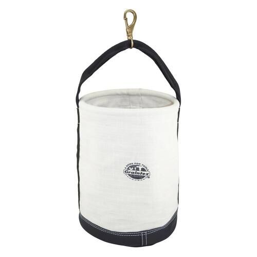 Graintex Inc. is proud to introduce Utility Ripstop Canvas Bucket Leather Bottom with Hook. Contains 1 inner pocket. The bag is manufactured with Heavy-Duty 28 oz. ripstop canvas and molded with PVC top ring with industrial grade leather bottom for extra protection. Its about 18 in. D which makes it durable to hold anything within the range of 150 lbs. maximum.