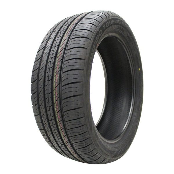 The GT Radial Champiro Touring AS tires are designed for passenger cars and crossovers. They feature a ribbed tread design with lateral grooves and wide circumferential grooves that eject water for reliable performance on wet surfaces. The Touring AS tires have multiple biting edges that provide all-season traction thanks to full-length sipes. These tires offer quiet comfortable rides because of the variable pitch tread blocks that reduce noise.