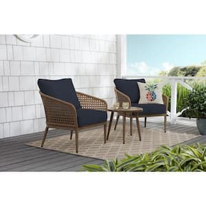 Hampton Bay Coral Vista 3-Piece Brown Wicker Outdoor Patio Bistro Set with CushionGuard Midnight Navy Blue Cushions