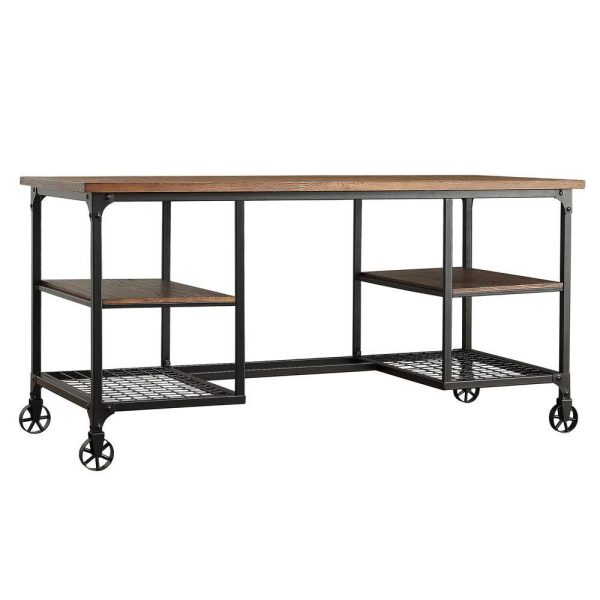 HomeSullivan 60 inch Rectangular Distressed Ash Writing Desk w/ Wheels