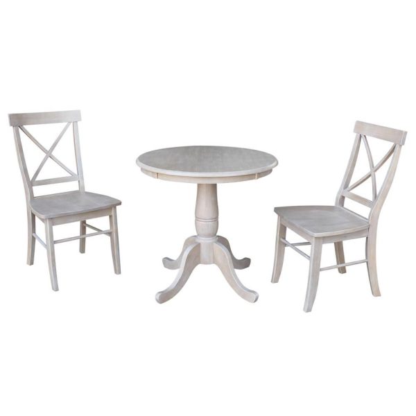 International Concepts Hampton 3-Piece 30 inch Weathered Taupe Round Solid Wood Dining (Set) w/ Alexa Chairs