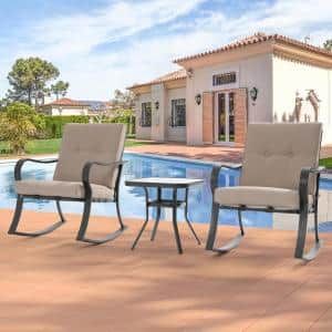 JOYESERY 3-Piece Patio Bistro Set Steel Frame Rocking Chair With Sponge Sand Cushions and Tempered glass table