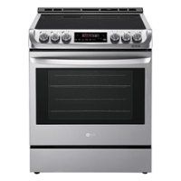 Enjoy meal prep versatility in the kitchen with this LG electric range. The 3200W dual cooktop elements provide rapid boiling, while the 6.3 cu. ft. oven accommodates oversize dishes. ProBake Convection technology bakes evenly on every rack for uniform results. This slide-in LG electric range has EasyClean technology for effortless 10-minute oven cleaning.