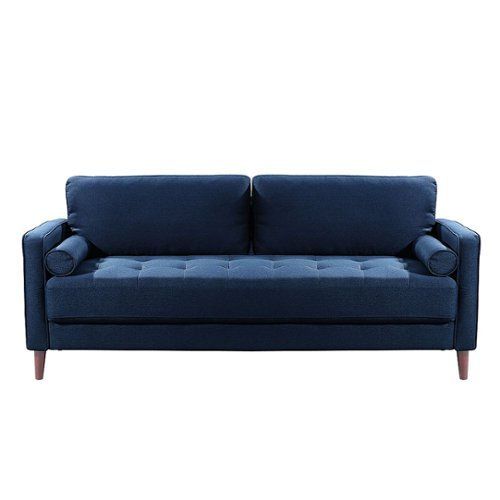 Lifestyle Solutions – Langford Sofa with Upholstered Fabric and Eucalyptus Wood Frame – Navy Blue