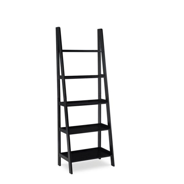 The Linon Benson Acadia Black Ladder Bookshelf is designed in a clean, open silhouette, enabling you to show off not only your top favorite titles but also decor objects and knickknacks. This black painted bookcase features five shelves in decreasing depth and is designed to fit easily into taller, narrower spaces. Use in a home office, living room, bathroom or entryway to provide ample open storage