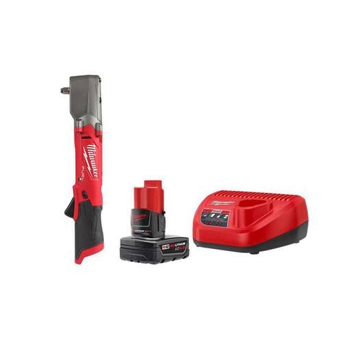 Milwaukee M12 FUEL 12V Lithium-Ion Brushless Cordless 3/8 in. Right Angle Impact Wrench W/M12 4.0 Ah Starter Kit