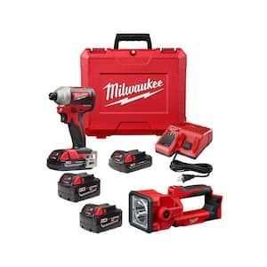 Milwaukee M18 18-Volt Lithium-Ion Brushless Cordless 1/4 in. Impact Driver Kit with LED Search Light & (2) 3.0Ah Batteries 2850-22CT-2354-20-48-11-1822