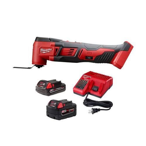 The Milwaukee M18 Cordless Multi-Tool cuts up to 50% faster and gives you up to 2X more cuts per charge than competitors. The oscillating multi-tool features best-in-class speed and performance and gives you the versatility to complete problematic job site applications. The cordless multi-tool is ideal for remodelers, flooring contractors, maintenance repair technicians, and electricians. It also allows you to make flush or plunge cuts, remove grout in corners and tackle other awkward jobs. The tool’s Constant Power Technology maintains blade speed for faster cutting during heavy applications. A 12-setting dial allows you to match the speed to the application. It includes 5 assorted sanding sheets, a sanding pad, and a wood cutting blade. The Milwaukee M18 REDLITHIUM XC5.0 & M18 REDLITHIUM CP2.0 Battery System Starter Kit includes an M18/M12 Charger. The M18 REDLITHIUM Battery Packs deliver more runtime, 20% more power, and 2X more recharges than standard lithium-ion batteries.