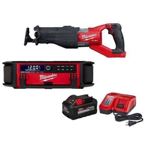 Milwaukee M18 FUEL 18V Lithium-Ion Brushless Cordless Super Sawzall Orbital Reciprocating Saw W/PACKOUT Radio and 8Ah Starter Kit