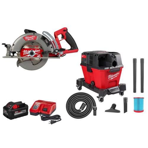 Milwaukee M18 FUEL 18V Lithium-Ion Cordless 7-1/4 in. Rear Handle Circular Saw W/M18 FUEL 6 Gal. Wet/Dry Vac and 8.0Ah Starter Kit
