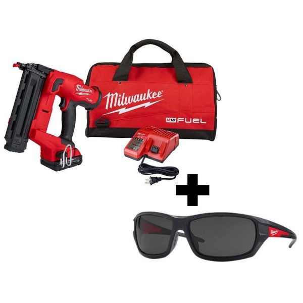 Milwaukee M18 FUEL GEN II 18-Volt 18-Gauge Lithium-Ion Brushless Cordless Brad Nailer Kit w/ Performance Safety Tinted Glasses