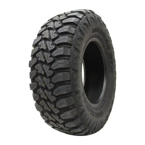 A mud terrain tire, the Roadian MTX from Nexen is designed for use on light trucks and SUVs and offers drivers strong traction on- and off-road, added durability, and a quiet ride. The Nexen Roadian MTX tire features an aggressive and versatile tread design that blends highway comfort with excellent off the road traction. Its dual sidewall design and tough ply construction enhance its load bearing ability as well as off the road endurance. The optimized block design confers self-cleaning capabilities for superior traction on mud and other challenging conditions. The spacing between blocks increases drainage of water and mud from the footprint to improve safety.