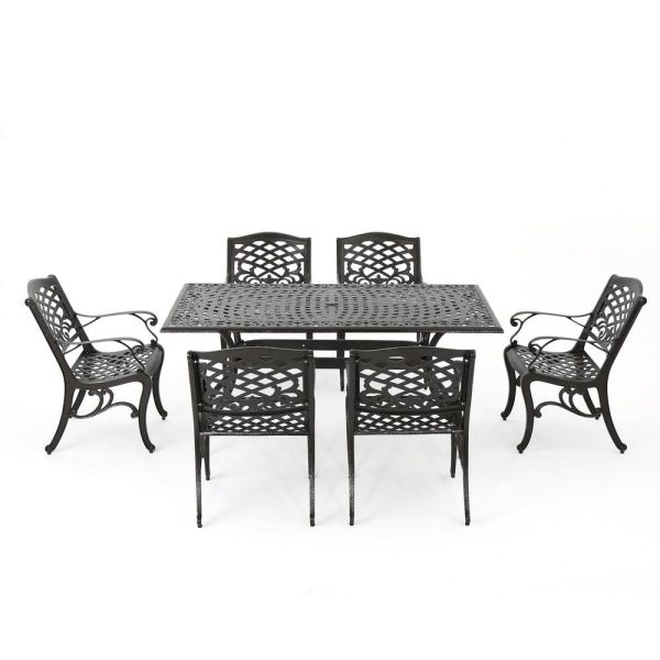 Noble House Sarasota Bronze 7-pc Aluminum Rectangular Outdoor Dining Set