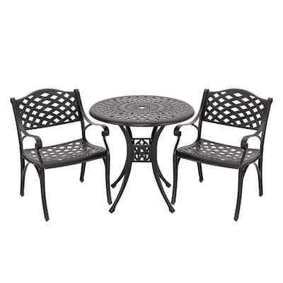 Nuu Garden 3-Piece Cast Aluminum Outdoor Bistro Set Patio Table Set w/ Umbrella Hole in Black