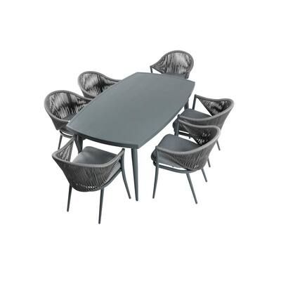 Nuu Garden 7-pc Aluminum Outdoor Patio Dining Set with Grey Cushion