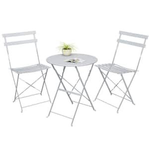 Pyramid Home Decor Daphne White 3-Piece Metal Outdoor Foldable Round Bistro Set
