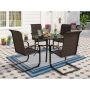 The Royal Garden Rhone Valley 5-Piece Dining Set includes 4 stationary dining chairs and a 39 in. square slat top dining table. Constructed of powder-coated rust free aluminum frames, the dining chairs feature a hand woven resin wicker high back. Seat cushions are constructed with weather resistant Olefin fabric. The 39 in. square dining table has an easy to clean and maintain aluminum slat top and seats 4 comfortably. Royal Gardens patent pending Twist Knob Assembly ensures assembly is quick and easy without the need for any tools