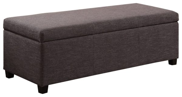 Add transitional seating to your living area with this 48-inch Simpli Home Avalon ottoman. Its durable slate gray upholstery evokes a crisp linen look, and the child safety hinge prevents abrupt closures for quiet access to your stored items. The unassembled legs of this Simpli Home Avalon ottoman attach easily and safely support its solid wood construction.
