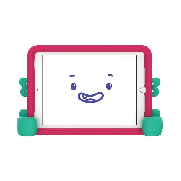 Designed for busy hands, Case-E transforms your iPad into a playful protector at home and on the go. Colorful arms adjust and bend, converting into a stand for hands-free viewing in portrait or landscape mode. In-car viewing is easier than ever with the detachable handle that slides around any headrest and reattaches for safe and secure in-car viewing. Complete with a shock barrier that absorbs impact, this playful protector has been drop tested by a third-party to ensure superior 6-foot drop protection. A raised bezel makes sure to add extra screen protection when dropped and bumped. Child safety is our top priority, which is why Case-E is constructed with hazard free EVA foam that is safe for kids of all ages, made formaldehyde-free and PVC & BPA free, keeping your children safer against unwanted chemicals. It also has a built-in antimicrobial treatment from Microban® that delivers a 99% reduction in stain and odor-causing bacteria on the case, creating a cleaner surface.