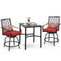 Enjoy comfort and stability with our bistro chairs set of 2, offering a wide seating and adjustable non-slip foot pads. They are waterproof, rust-resistant and easy to clean, providing both elegance and practicality. The modern aesthetic of 2-chairs and a side table suitable for indoor and outdoor use. Patio bistro set adopt upgraded design allows for easy alignment and attachment of the legs to the seat, reducing the time and effort required for assembly.