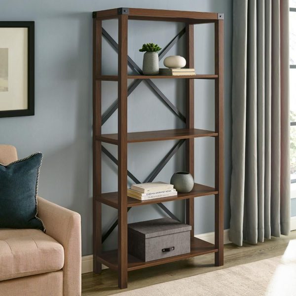 Walker Edison Furniture Company 64inch Dark Walnut Wood 4-shelf Etagere Bookcase w/ Open Back