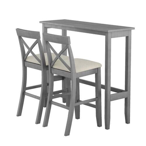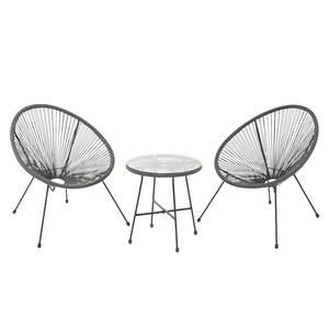 Gymax 3-Piece Rattan Bistro Chair Set Patio Furniture Set W/Table Mix Gray