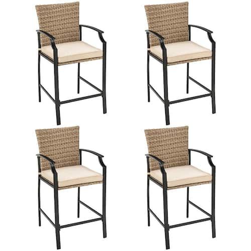 Gymax 5-Piece Metal Patio Bar Stool and Table Set Outdoor Bistro Furniture Set with Beige Cushions