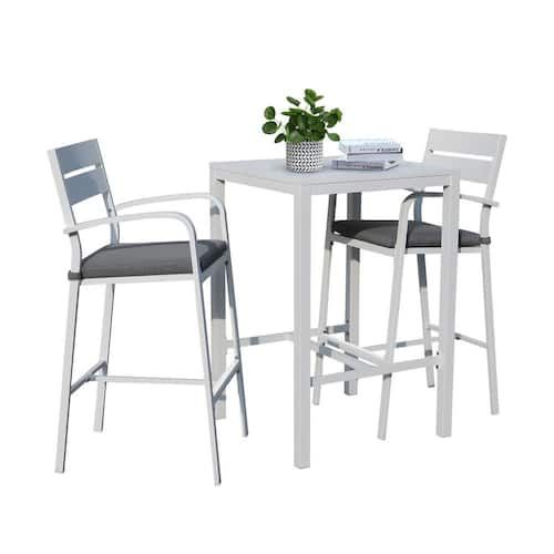 grossag 3-Piece Antique White Plastic Outdoor Bistro Conversation Set with Round table and Widened Seat
