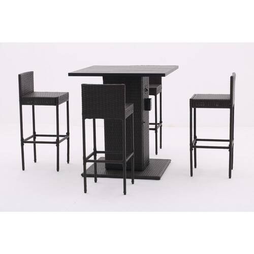 Gray 5-Piece Wicker Outdoor Dining Set, Patio Conversation Bar Set With Metal Tabletop for Backyards, Porches, Gardens hj-114