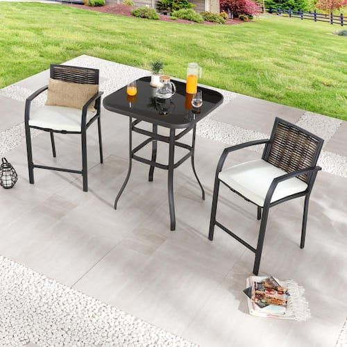 Patio Festival 3-Piece Wicker Bar Height Dining Set with Beige Cushions