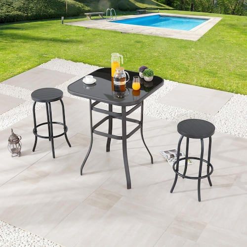 Patio Festival 3-Piece Metal Square Bar Height Outdoor Dining Set