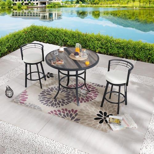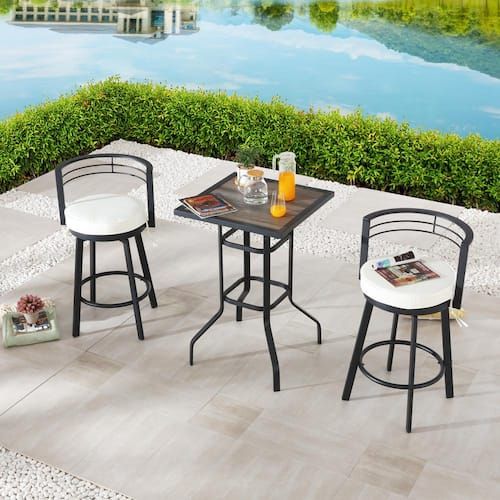 Patio Festival 3-Piece Metal Bar Height Outdoor Dining Set with Beige Cushions