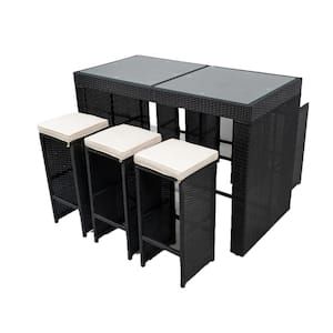 Cesicia 5-Piece Wicker Acacia Wood Garden PE Rattan Outdoor Dining Set Foldable Tabletop with Cushions and 4 Stools