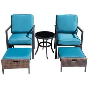 Brown 5-Piece Wood Outdoor Dining Set with 4-Stools Cushions