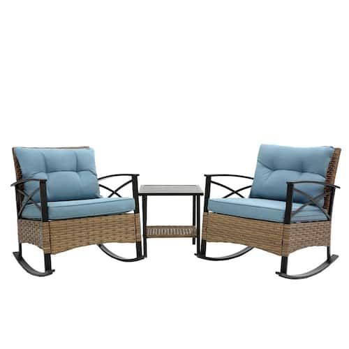 Cesicia 3-Piece Wicker Outdoor Bistro Set with Blue Cushion and Coffee Table
