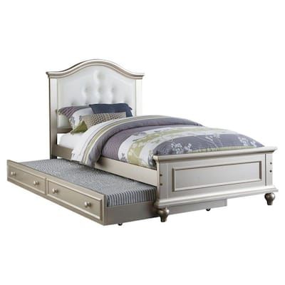 Benjara White Multi utility Twin Panel Headboard Bed with Trundle Tufted Head Boards