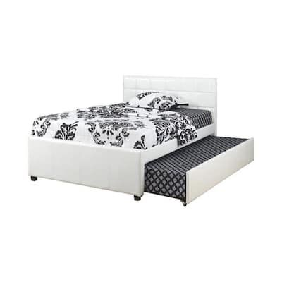 Benjara Gracious White with Trundle and SQU Tufted HB Wooden Full Bed 55 in. L x 77 in. W x 41 in. H