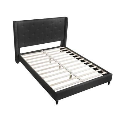 Best Master Furniture London Black Queen Upholstered Linen Blend Wingback Platform Bed