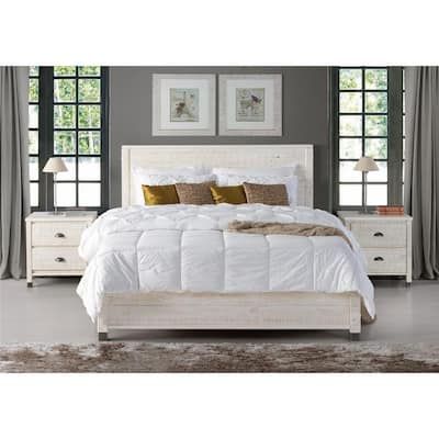 Camaflexi Baja Shabby White, Full Size, Panel Headboard, Platform Bed