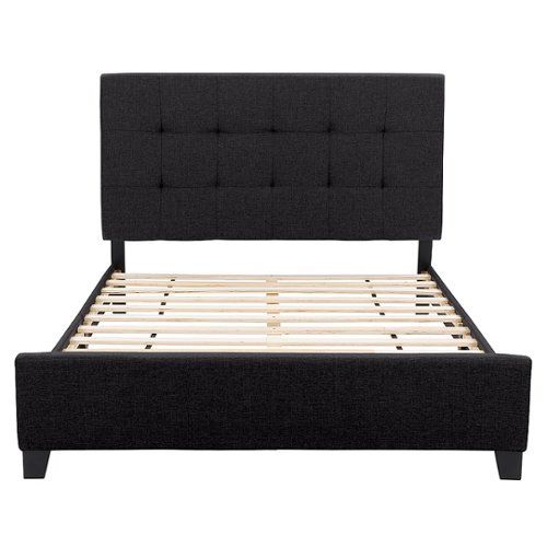 CorLiving - Bellevue Wide Panel Upholstered Bed - Full - Dark Gray