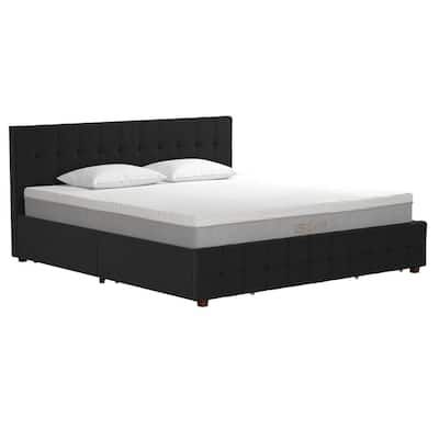 Cream Modern Fort California King Wood Platform Bed Frame No Box Spring Needed with Upholstered Headboard