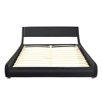 Costway Full Faux Leather Upholstered Platform Bed Adjustable Headboard Black